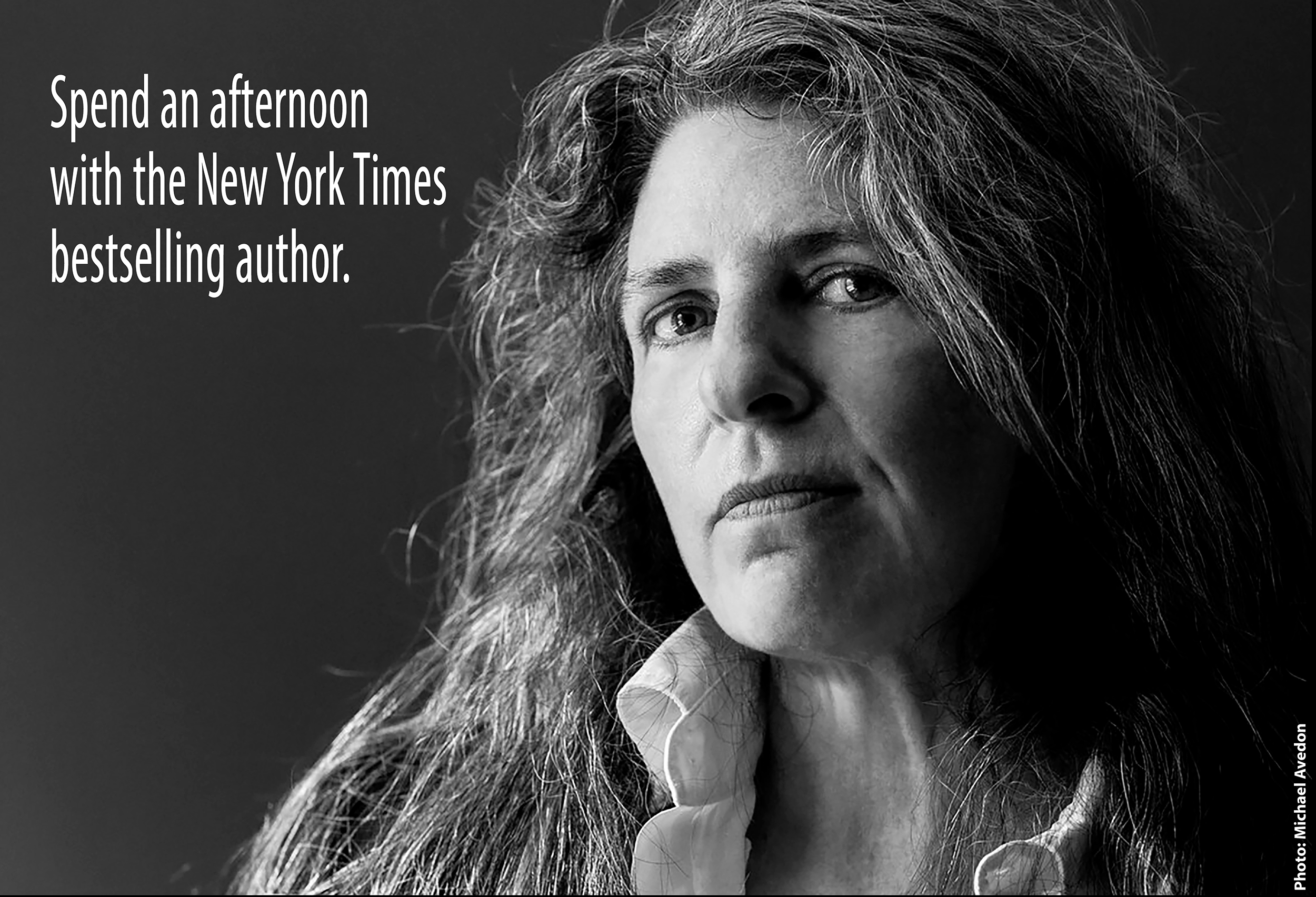 A black and white photo of Jean Hanff Korelitz with the text spend an afternoon with the New York Times bestselling author.