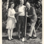 Groundbreaking, August 1970: l. to r. library director Barbara Rau, Dr. Arthur Schmidt, library board president Theodore Wenzl