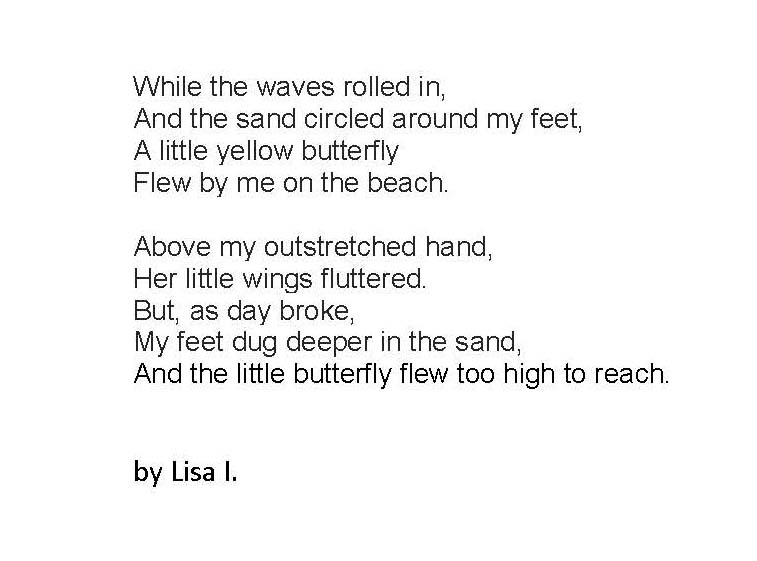 Congratulations to our Poetry Month Contest winners: Kat F., Betsy R., Evelyn P., Marisa A. and Madeline S.! Prizes for the winners were donated by the Friends of Bethlehem Public Library. To check out their winning poems below, click on the image to make it larger.