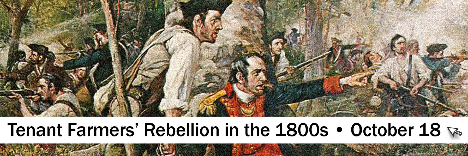 Clickable image of an old painting of soldiers in battle. Text reads Tenant Farmers' Rebellion in the 1800s October 18